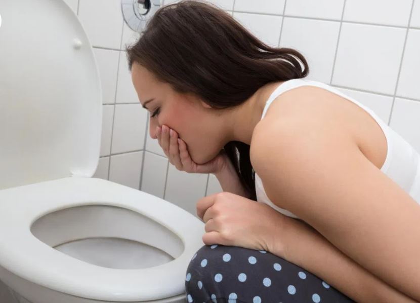 Lean forward and breathe through your mouth – this will drain blood into your nose instead of down the back of your throat