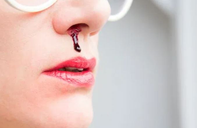 Stay upright, rather than lying down, as this reduces the blood pressure in the blood vessels of your nose and will discourage further bleeding
